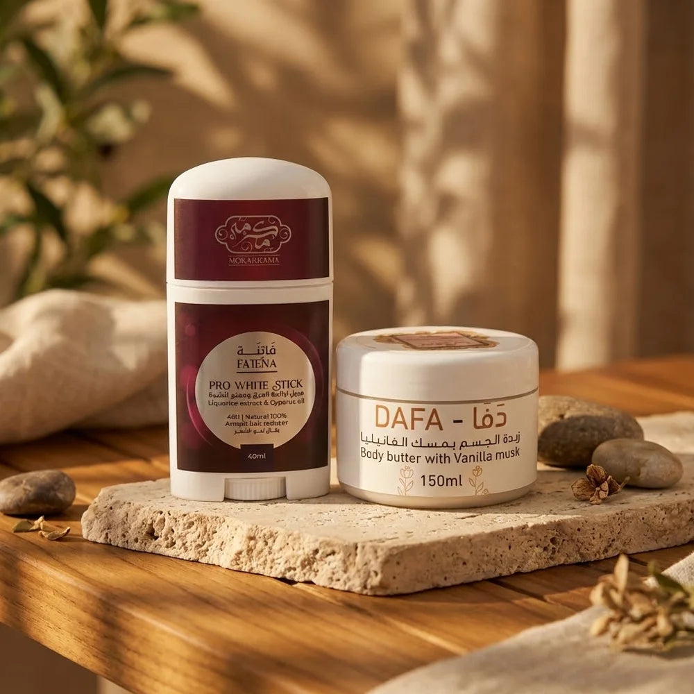 رفيقكِ الدافئ في كل لحظة. "أنس" تجمع بين حماية "فاتنة" وترطيب زبدة "دفا" الغني بالفانيليا، لتدللي بشرتكِ بعناية فائقة ورائحة تحتضن حواسكِ.