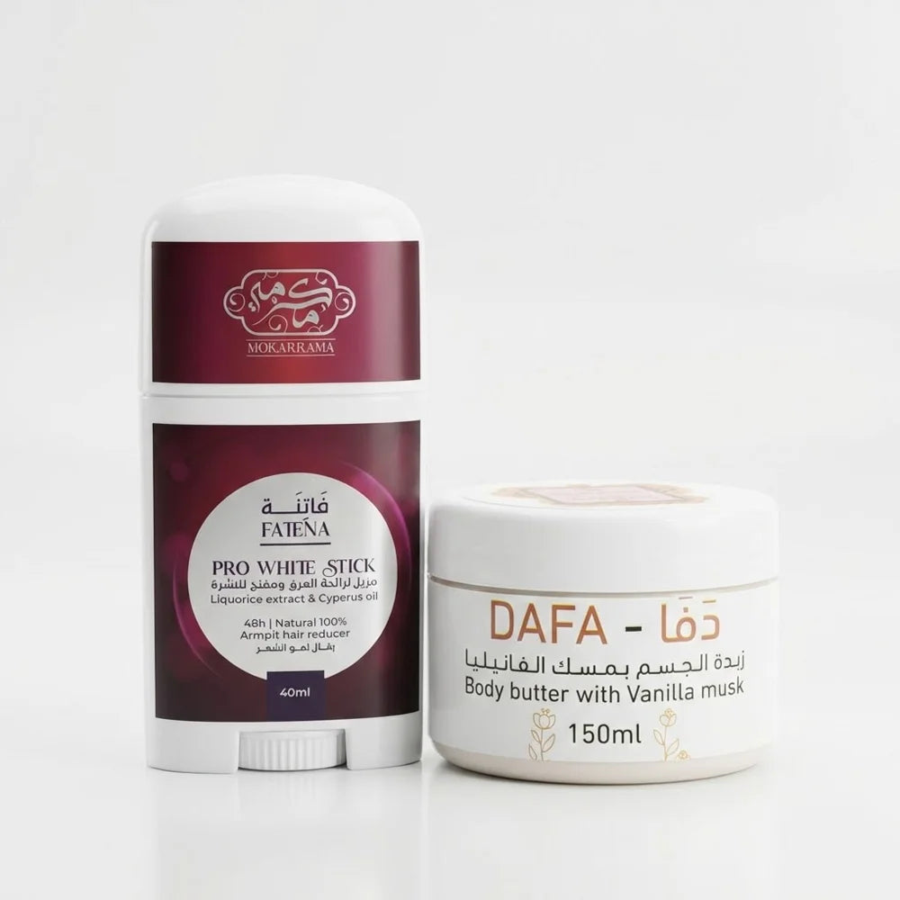 زبدة الجسم مُكرَّمة - دِفَا (١٥٠ جرام): ترطيب عميق لطبقات الجلد برائحة الفانيليا الدافئة لتنعيم وتفتيح البشرة.